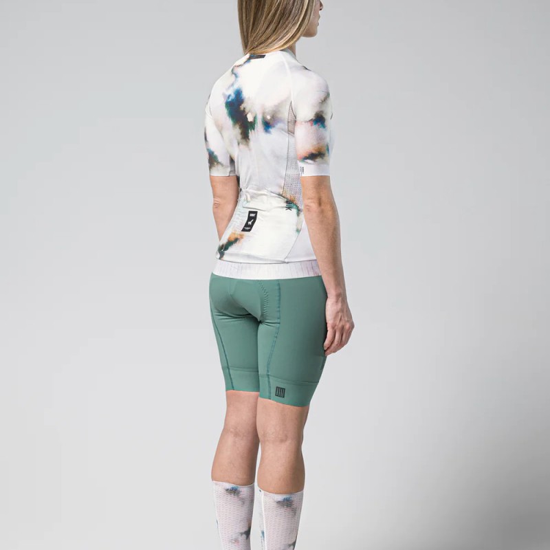 El tejido de las mangas se ha seleccionado para conseguir una mejor dispersión del viento. Su corte láser con ausencia de costuras, heredado de nuestros modelos de gama alta, ofrece una superficie lisa que elimina la fricción, proporcionando mayor aerodinámica y comodidad.