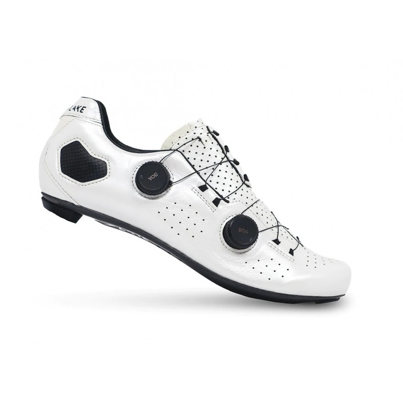 Disponible en un patrón de tacos de 3 agujeros. La CX333 utiliza el sistema de doble suela patentado de Lake. La suela interior es una plataforma de fibra de vidrio semiflexible que permite que el pie tenga cierta flexibilidad en la parte anterior del pie, donde el pie tiende a hincharse y, por lo general, se producen puntos calientes o entumecimiento. La suela interior está suspendida sobre la suela exterior rígida de carbono. Este sistema nos permite utilizar una suela de carbono extremadamente rígida sin sacrificar la comodidad de conducción.